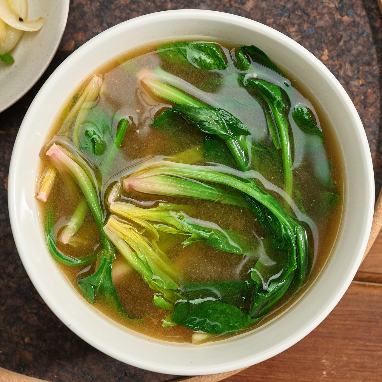 - 시금치·두부·대파를 넣어 가볍게 끓입니다.
