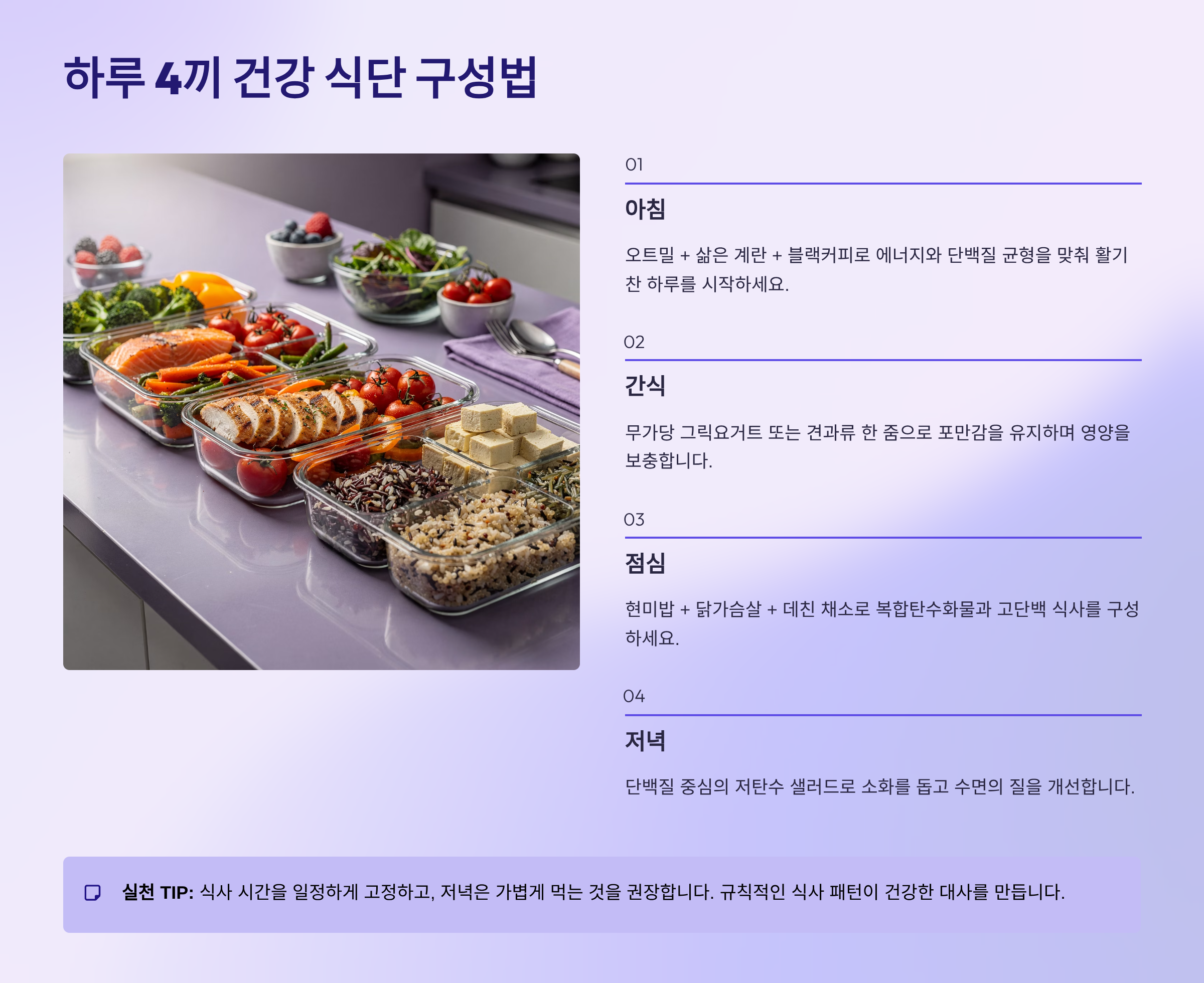 건강한 하루 식단은 복잡할 필요 없습니다. 단백질, 섬유질, 좋은 지방이 균형 있게 배치되어 있다면 충분합니다.