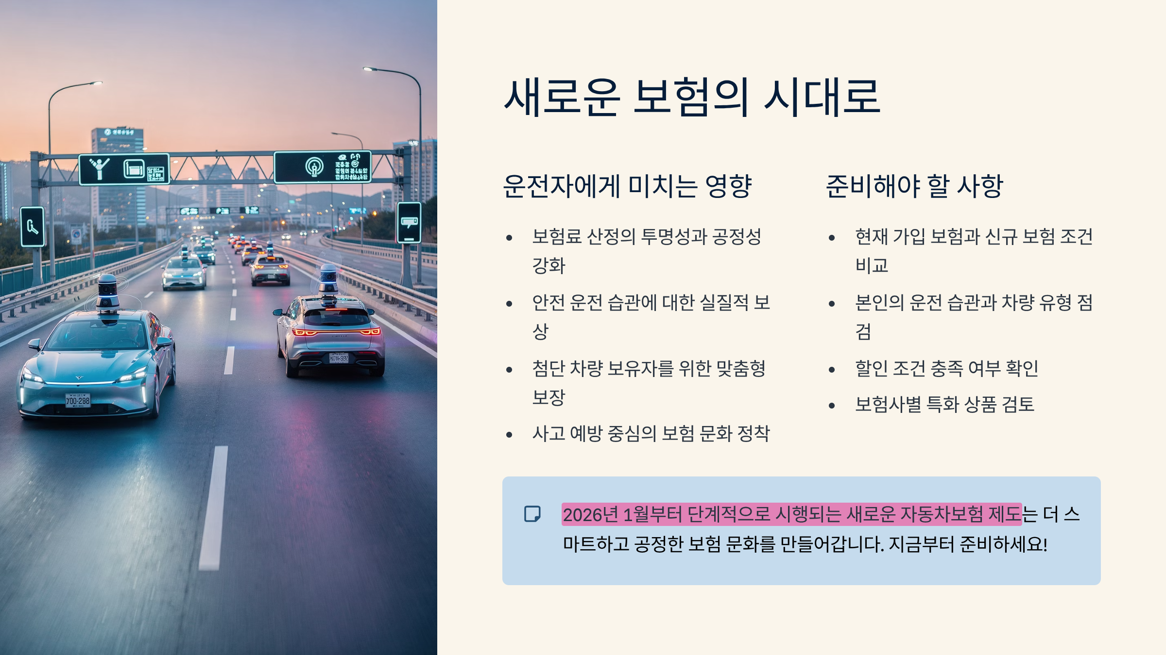 2026년 자동차보험 제도 변경 총정리|보험료·보장범위·가입조건 전면 개편