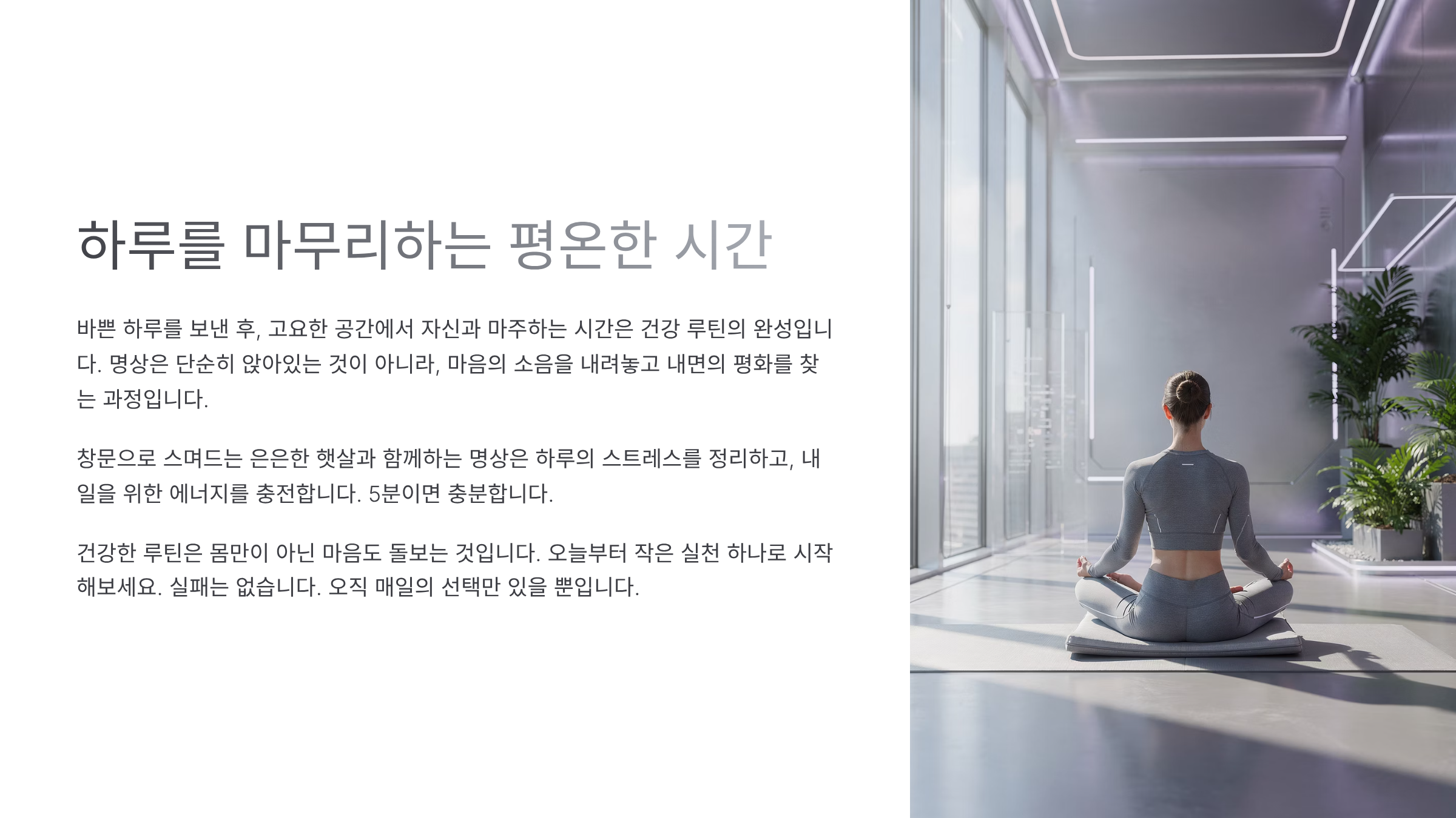 - 2. 일상과 결합하기: 아침 루틴, 퇴근 후 루틴 등 기존 생활에 자연스럽게 끼워 넣어야 합니다.